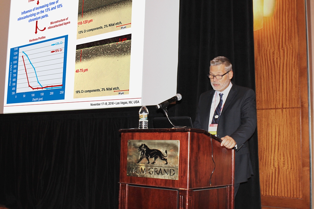 he breadth of topics covered in NS4 included Practical Gas Nitriding of Aerospace Gears; Elements of Uniformity and Reproducibility of Controlled Gas Nitriding; Activation of Surfaces Prior to Gaseous Nitriding of a 3wt.% Cr Carbon Iron-based Alloy; Environmentally-Friendly Depassivation and Nitriding of Stainless Steels; Electrochemical Behaviour in SBF of 316l Stainless Steel Thermochemically Treated; Prediction of the Hardness Profile of Tempered & Gas Nitrided Low Alloyed Steel; How to Determine Pre-Nitriding Properties Based on Hardenability and Tempering Conditions – a Comparison of the Most Popular Approaches; North American Introduction to Active Screen Plasma Nitriding (ASPN); Differences in Plasma Nitriding Technology, New Developments from Ion Heat by Ion Heat; Solution-Oriented Approach to Nitriding / Nitrocarburizing Controls; Parts Cleaning Before & After Nitriding as a Value-Added Process Step; Versatility and Technological Possibilities of Controlled Ferritic Nitrocarburizing; Simulation of Nitriding / Nitrocarburizing Process; and Mathematical Modeling & Simulation of the Compound Layer Growth Kinetics in Cylindrical Surfaces during Plasma Nitriding of Pure Iron.